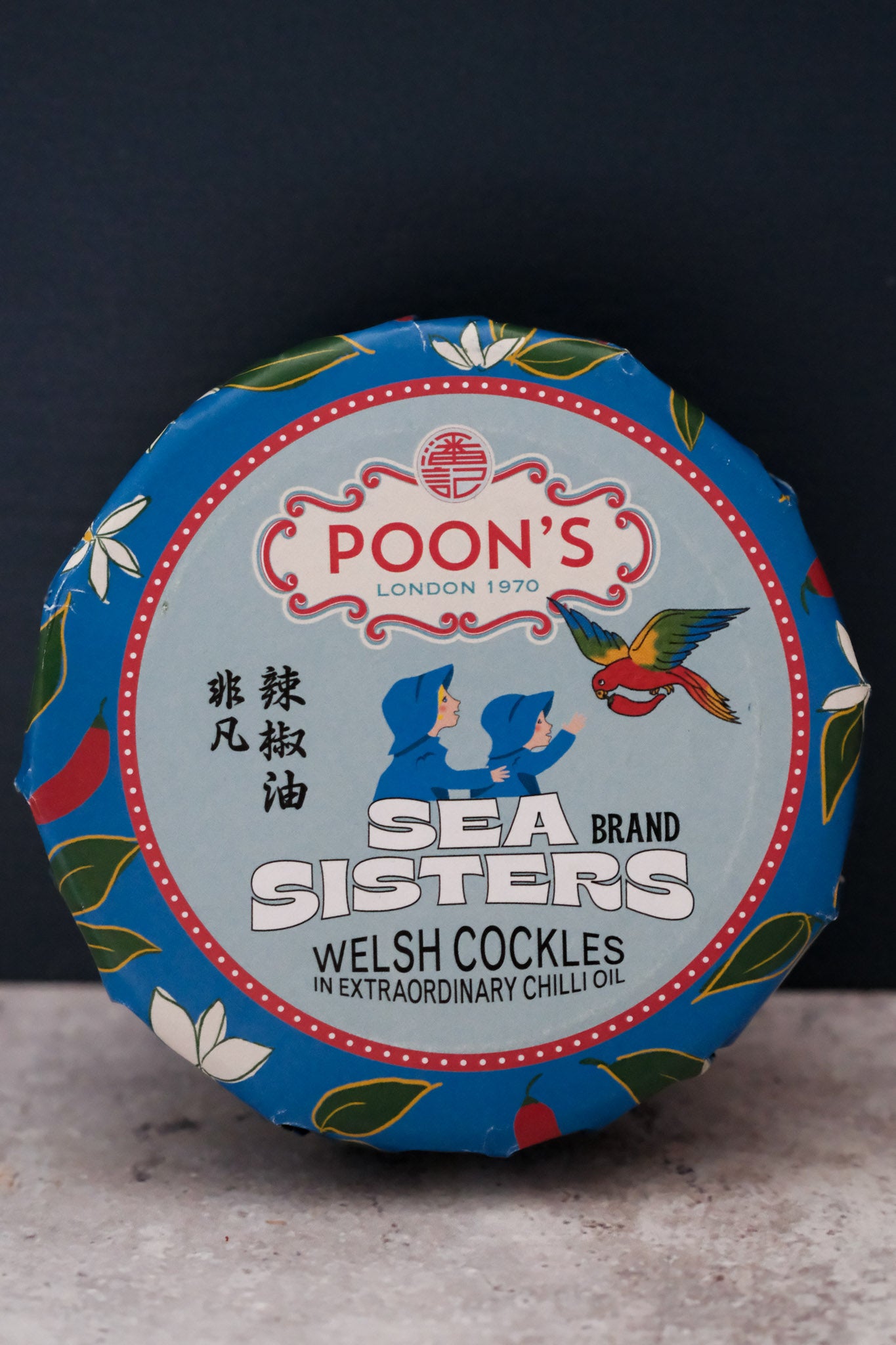 This is a tin of naturally sweet, hand gathered Welsh cockles, paired with Poon’s Extraordinary Chilli Oil. This chilli oil is infused with the intense flavours of salted black beans.