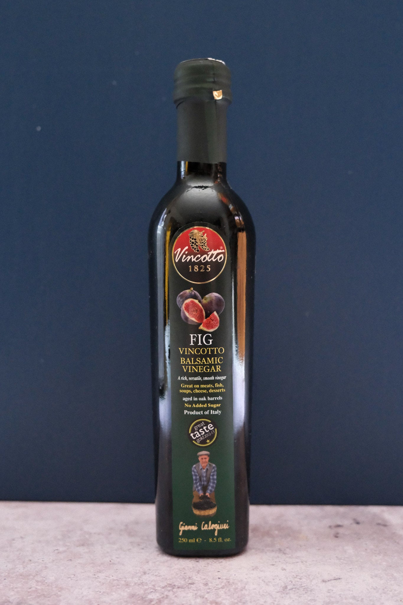 Vincotto Fig is made from a blend of Negroamaro and Malvasia grapes in which figs have ripened for six months. This vinegar is rich and smooth with a sweet flavour of figs.